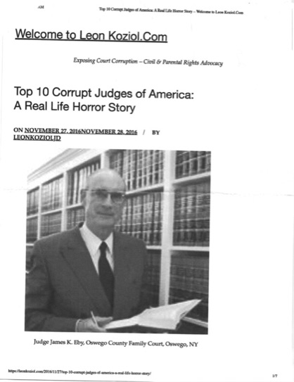"“Regardless, not one of these judges was elevated to higher office. This includes judge James Eby who no longer presides over my case in Oswego, New York. In the aftermath of his uncorrected bias, innocent third parties were irreparably harmed. During his bombastic antics directed at me, be gave no concern for extended family similarly denied all contact with my daughters. He simply pressed on with his ego-driven agenda of retaliation to maintain favor among colleagues on and off the bench.”